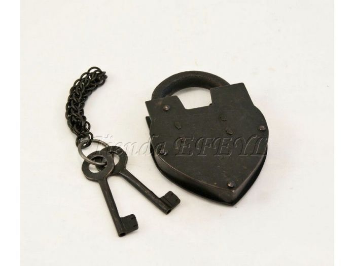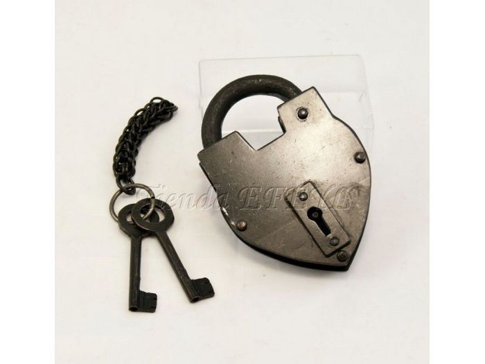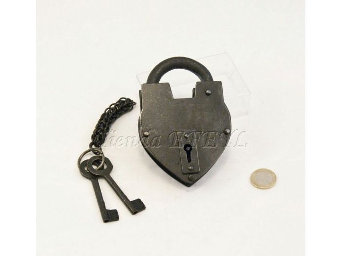 Candado de hierro forjado inspirado en la familia italiana de los Borgia en el siglo XV, a finales de la época medieval. Pudo ser utilizado en puertas, cofres o cadenas. Es muy resistente, perfectamente funcional e incluye dos llaves junto con un llavero de anillas de cota de malla trenzadas.