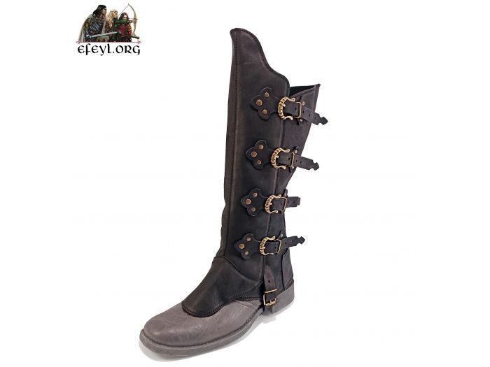 En los trajes medievales tienen además una ventaja, que supone poder utilizar un calzado moderno, cómodo, resistente y con buena tracción, oculto por la polaina de piel.