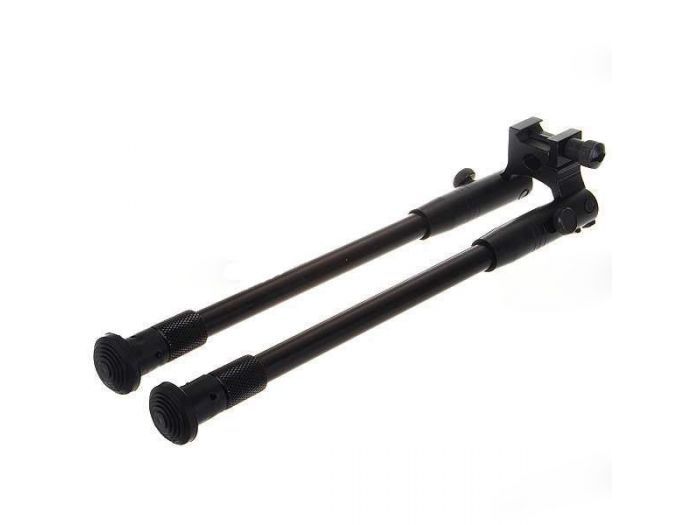 Bípode de acero para raíl de 20mm o para ajustar al cañón (incluye adaptador de abrazadera). Extensible, hasta 30 cm de elevación y plegable en horizontal.