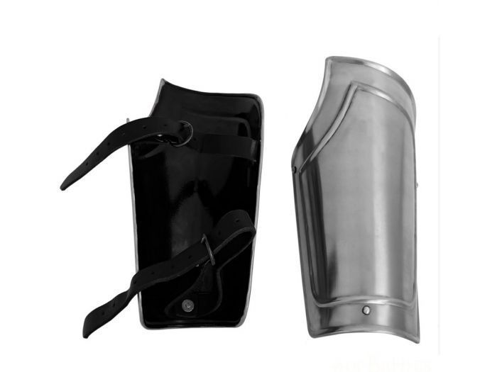 Se fijan mediante correas de cuero negro con hebillas. Las correas son suficientemente largas para llevar los brazales con un gambeson o cota de malla.