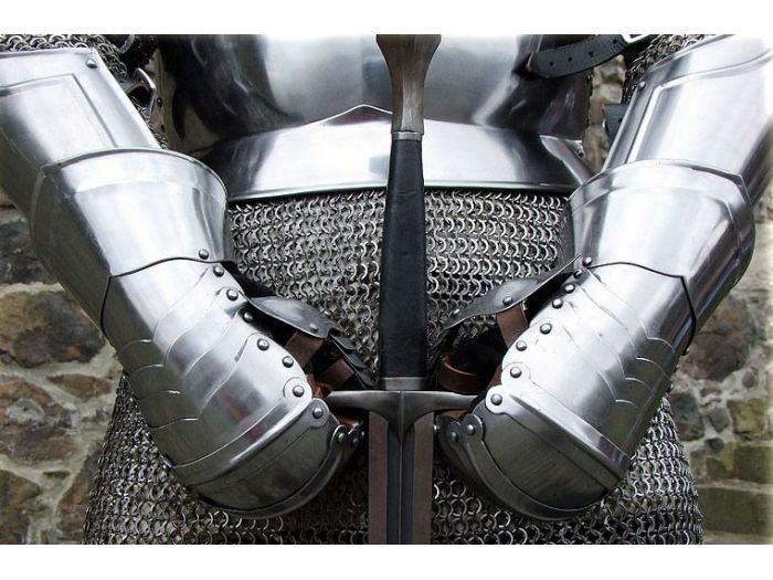 Los guanteletes de placas de acero articuladas para la lucha representan la cúspide de la tecnología en armaduras del medievo y se fabricaron en los últimos dos siglos de esta época.