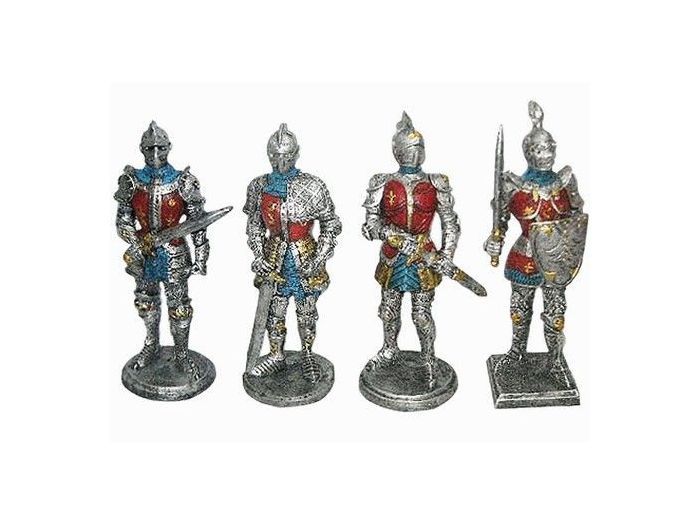 Set de 4 figuras de caballeros medievales decorativos de resina, pintados a mano.