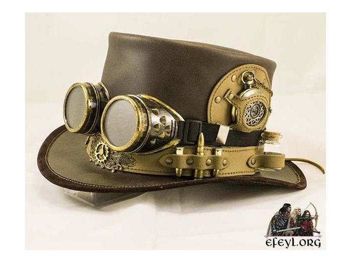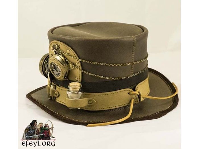 Este elegante sombrero reúne la elegancia con la utilidad que necesita todo caballero viajero o dama viajera steampunk.